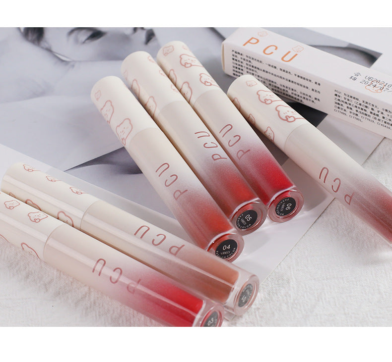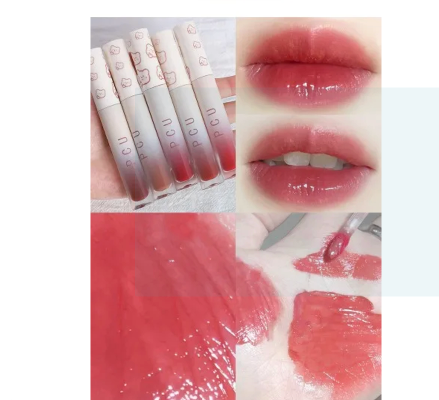 [COD] PCU Gradient Bear Lip Glaze Glass Water Silky Waterproof
